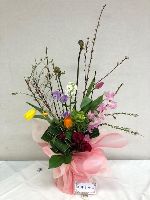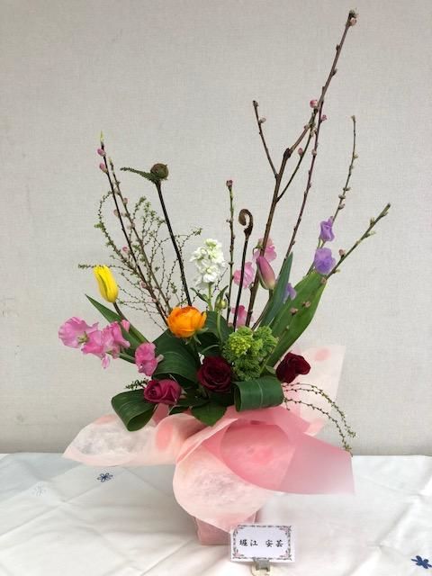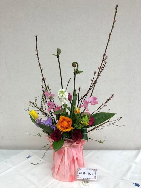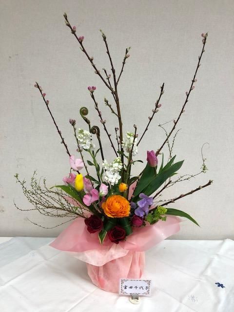 花桃 ラナンキュラス チューリップ 菜の花 雪柳 スイトピー ストック ゼンマイ ドラセナ